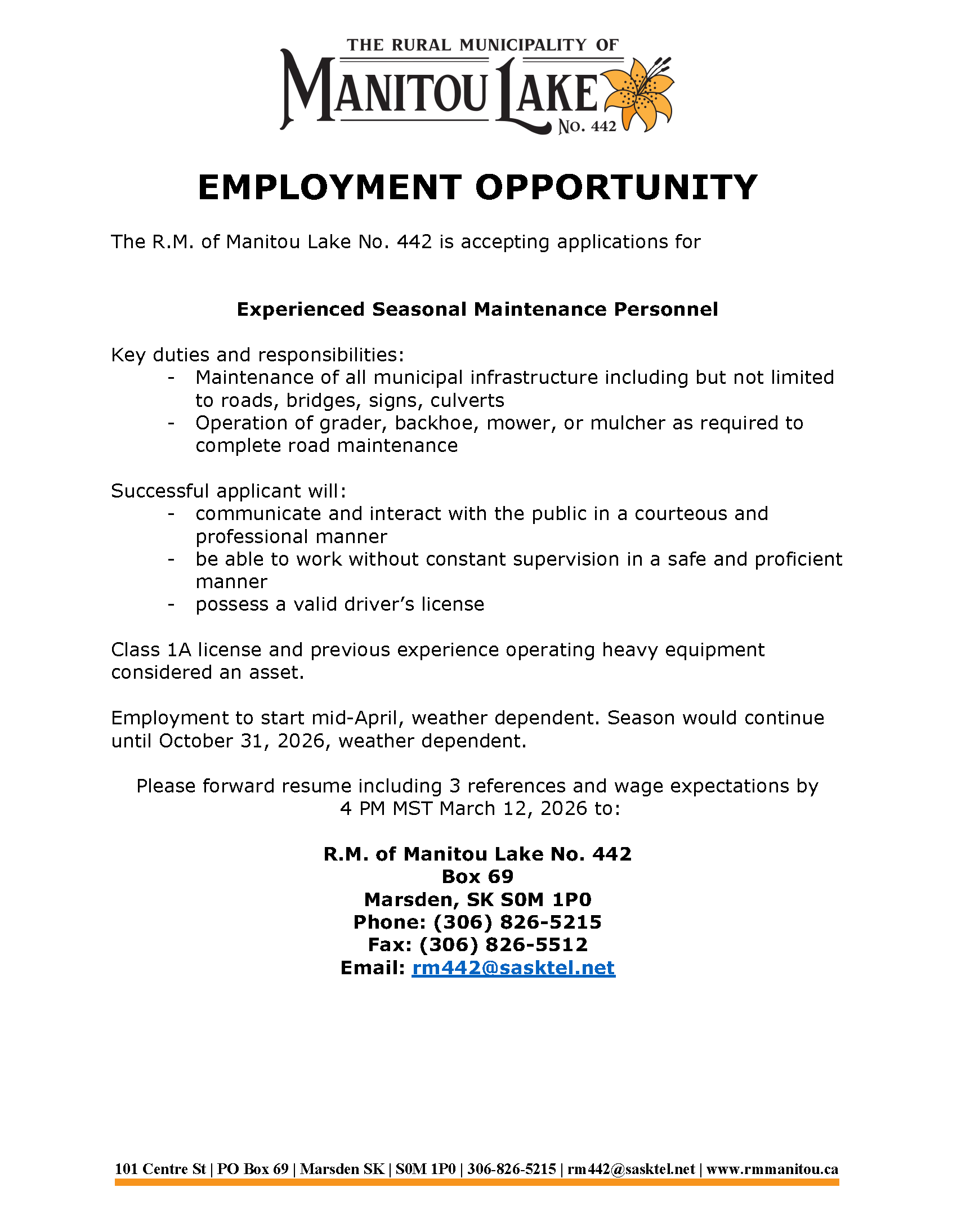 The R.M. of Manitou Lake is now accepting eTransfer with our email rm442@sasktel.net.